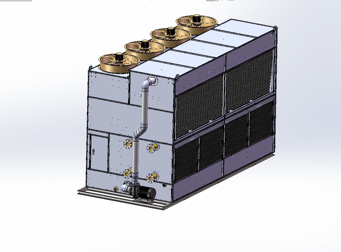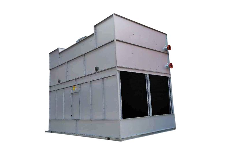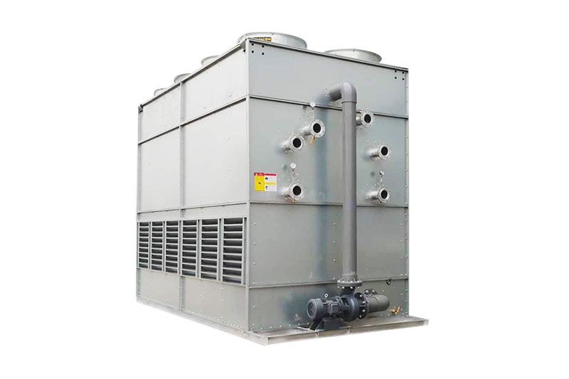 閉式冷卻塔利用水蒸發(fā)時吸收熱量的原理使被冷卻液體冷卻。噴淋水存于冷卻塔底部集水盆,工作流體在閉式冷卻塔的散熱盤管內(nèi)進(jìn)行封閉循環(huán)。噴淋水由噴淋泵經(jīng)布水系統(tǒng)和噴淋頭均勻地噴灑在散熱盤管表面,小部分水被蒸發(fā),吸走熱量;另一部分水進(jìn)入底部集水盤,再由噴淋系統(tǒng)分布于散熱盤管表面,如此進(jìn)行循環(huán)冷卻從而降低散熱盤管內(nèi)流經(jīng)的工作液體的溫度。